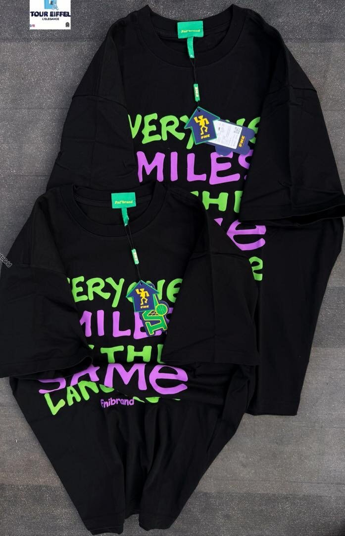 T-shirt noir unisexe avec imprimé graphique coloré 'Every Smile The Same'. Confortable et stylé, idéal pour un look décontracté et tendance. Parfait pour toutes occasions informelles.