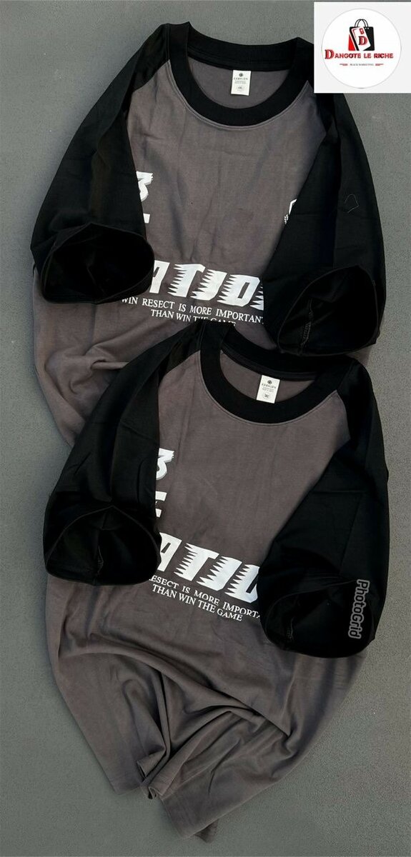 T-shirts bicolores en coton doux avec manches contrastantes. Design moderne avec slogan audacieux. Idéal pour un look décontracté et stylé.