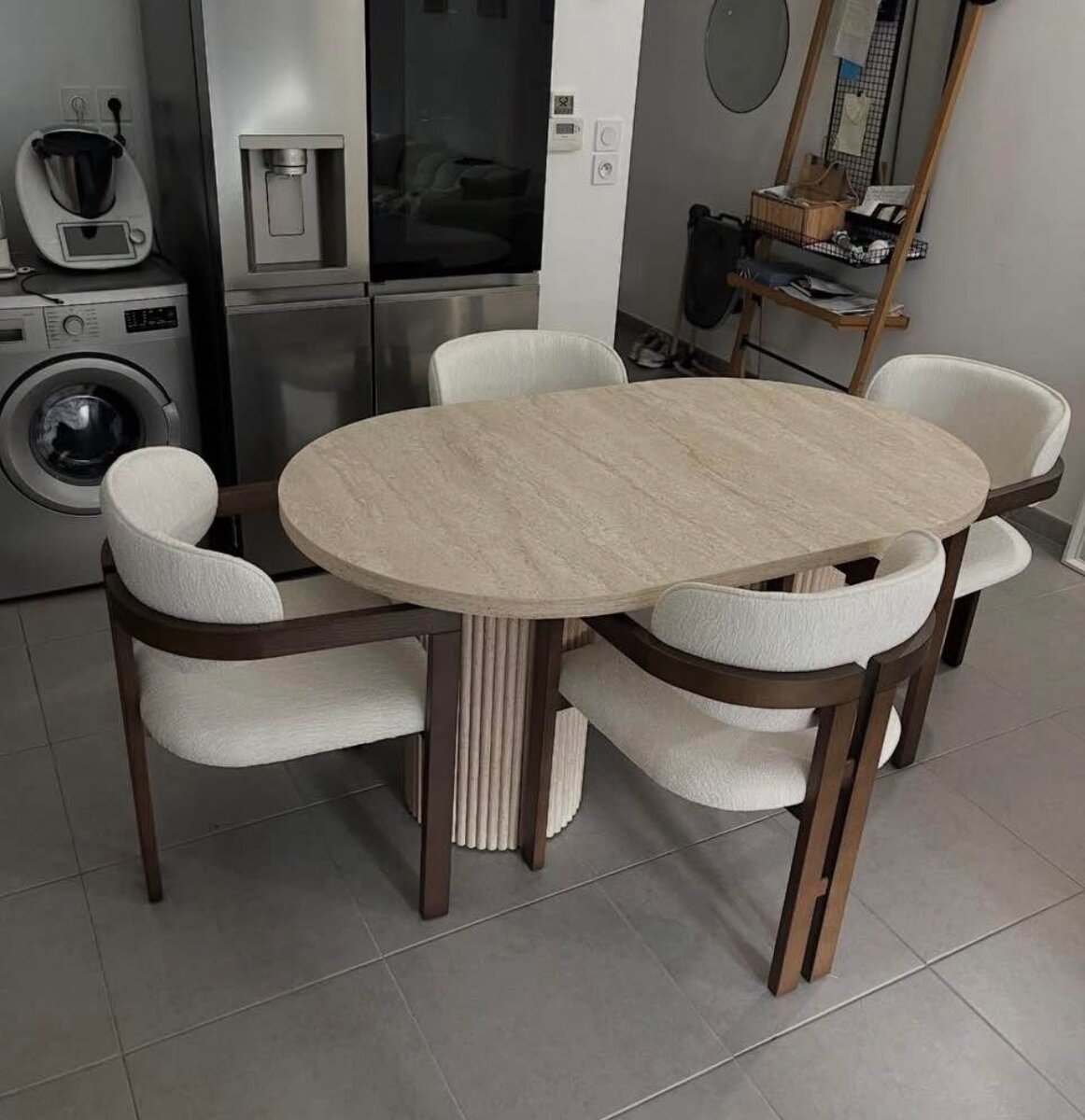 Table à manger en bois et pierre