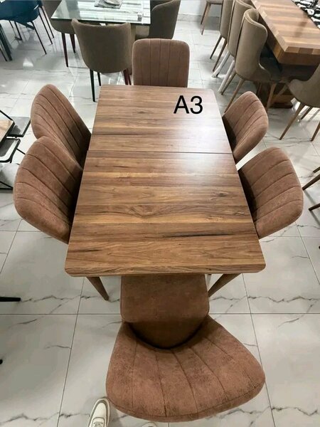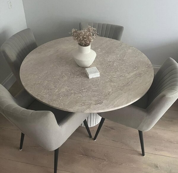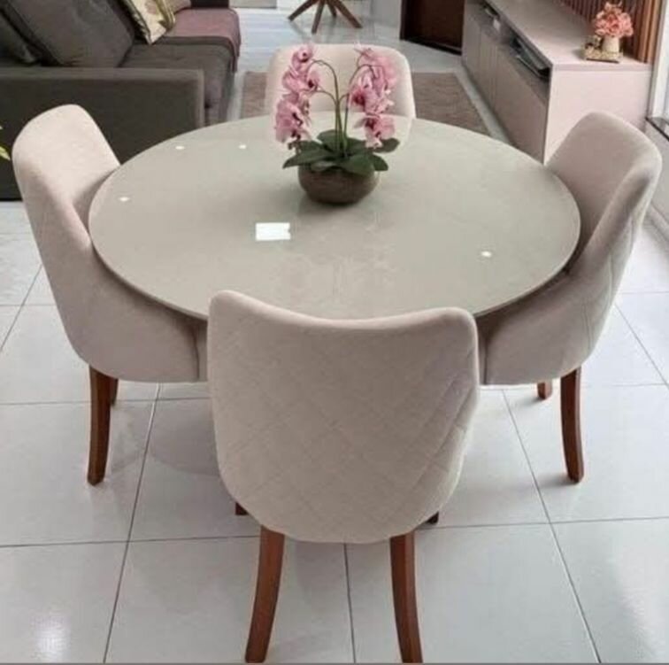 Table à manger ronde élégante avec chaises rembourrées. Parfaite pour une salle à manger moderne. Fabriquée avec des matériaux de haute qualité pour un confort et une durabilité optimaux.