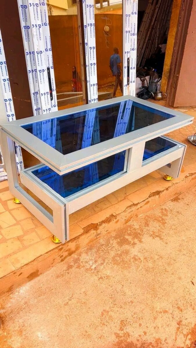 Table basse moderne en verre et métal