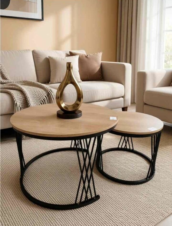 Ajoutez une touche de modernité à votre salon avec cette table basse ronde en bois et métal. Parfaite pour les espaces de vie contemporains, elle combine fonctionnalité et design élégant.