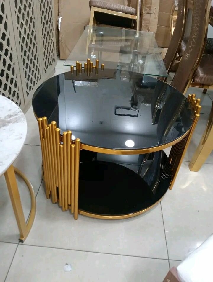 Découvrez cette table basse rotative élégante, parfaite pour le salon. Son plateau en verre noir et sa structure dorée ajoutent une touche de sophistication. Idéale pour les apéritifs ou comme centre de pièce.