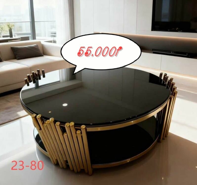 Élégante table basse ronde avec plateau en verre noir et base dorée, parfaite pour un salon moderne. Design unique et sophistiqué qui attirera tous les regards.