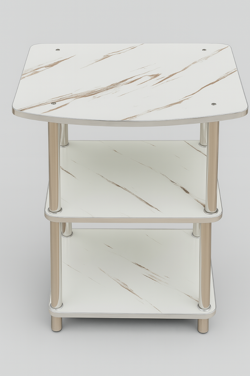 Élégante table d'appoint en marbre avec trois niveaux. Parfait pour le salon ou le bureau. Idéal pour exposer des décorations ou ranger des livres.