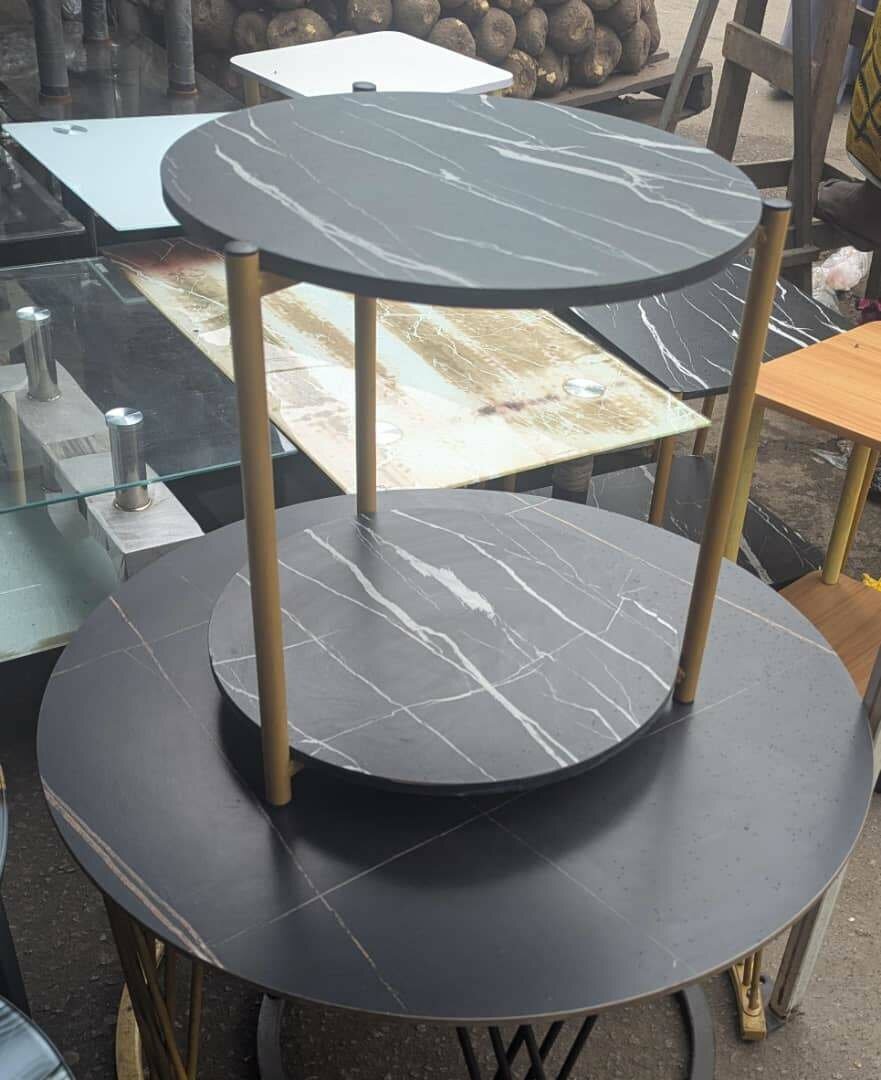 Ajoutez une touche d'élégance à votre intérieur avec cette table d'appoint en marbre noir à double niveau. Parfaite pour le salon ou comme table de chevet, avec un design contemporain et des pieds dorés raffinés. Un choix idéal pour sublimer n'importe quel espace.