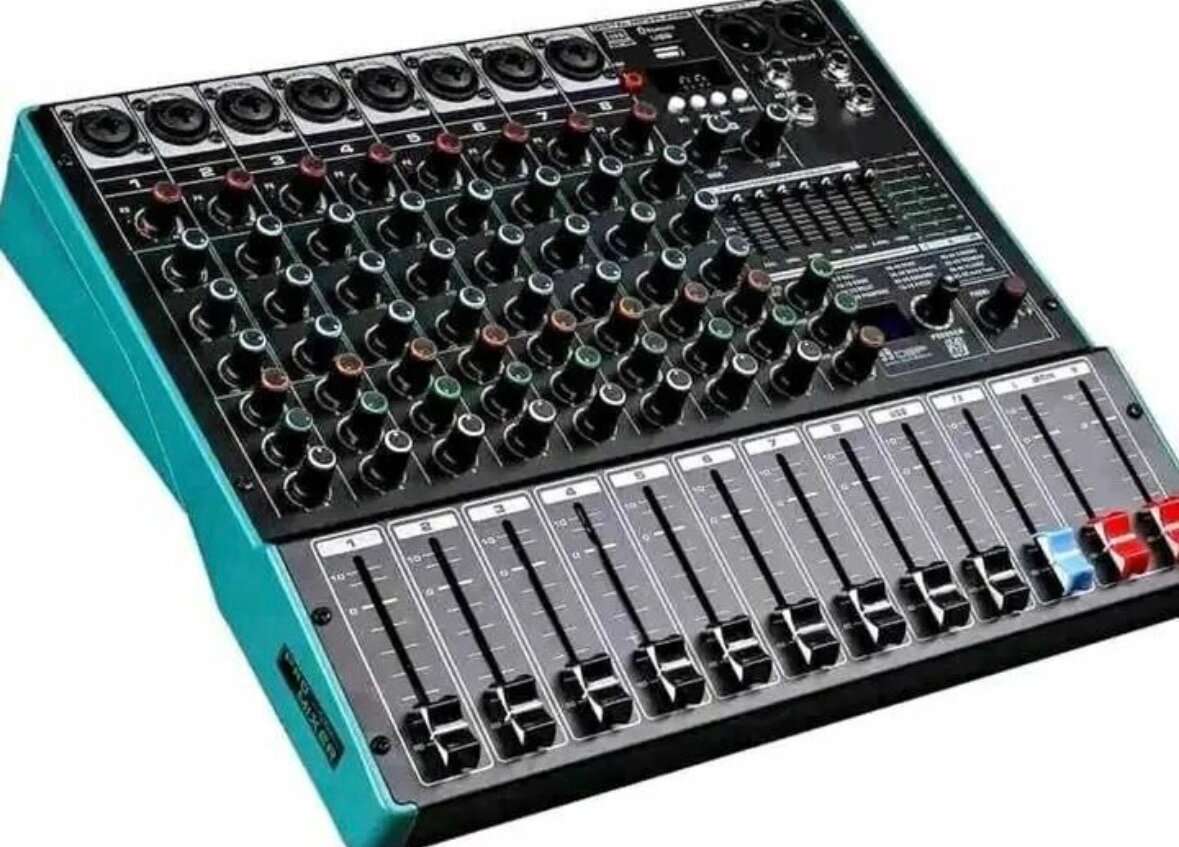 Table de mixage professionnelle pour la production audio, les concerts et les événements. Elle offre un contrôle précis des niveaux de son avec plusieurs canaux et réglages intuitifs.