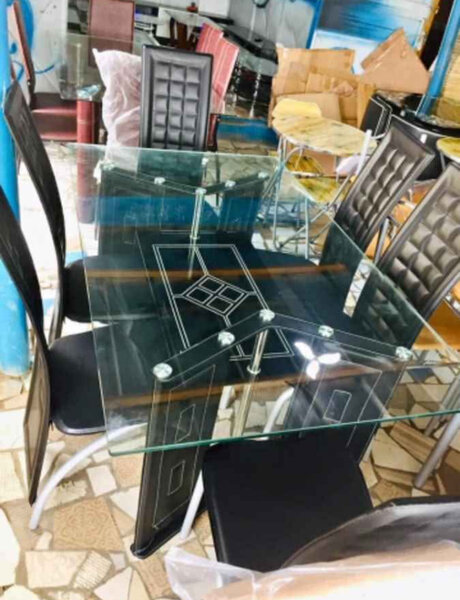 Ajoutez une touche moderne à votre salle à manger avec cette table en verre élégante accompagnée de six chaises au design sophistiqué. Parfait pour les repas en famille ou les réunions entre amis. La transparence du verre apporte légèreté et sophistication à votre intérieur. Idéale pour tout décor contemporain.