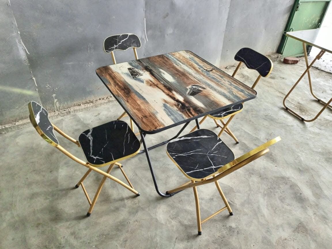 Transformez votre espace avec cet ensemble table et chaises pliables, parfait pour les petits espaces. Le design en bois et marbre est idéal pour un usage intérieur ou extérieur. Solide, stylé et pratique.
