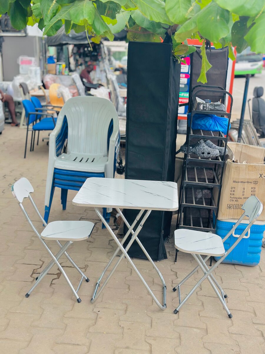 Ensemble table pliante et chaises, parfait pour les pique-niques ou les petits espaces. Légers et faciles à transporter, ces meubles sont idéaux pour un usage en extérieur comme en intérieur. Profitez de sa praticité et de son design compact pour gagner de l'espace.