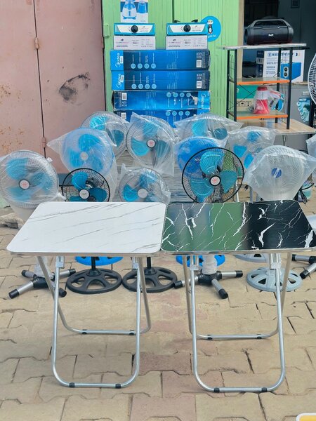 Cette table pliante est idéale pour les événements en plein air, les marchés ou les utilisations domestiques. Sa structure en métal robuste assure une grande stabilité, tandis que son plateau recouvert de plastique bleu est facile à nettoyer.