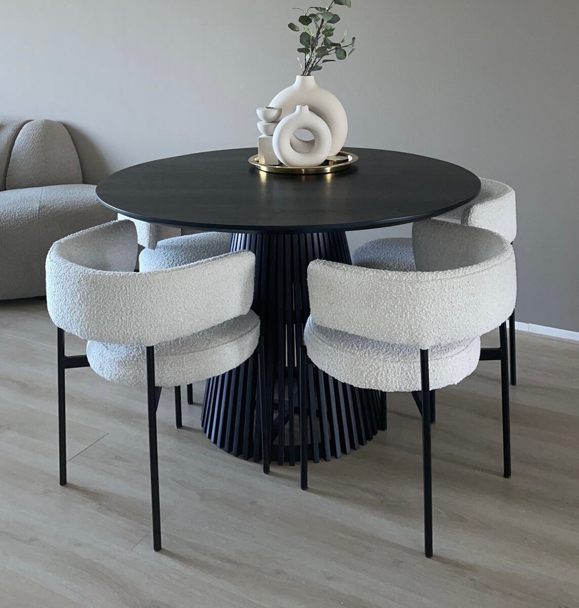 Élégante table ronde moderne avec chaises en tissu doux. Parfaite pour un salon ou une salle à manger. Structure robuste et style contemporain ajouteront une touche chic à votre intérieur.
