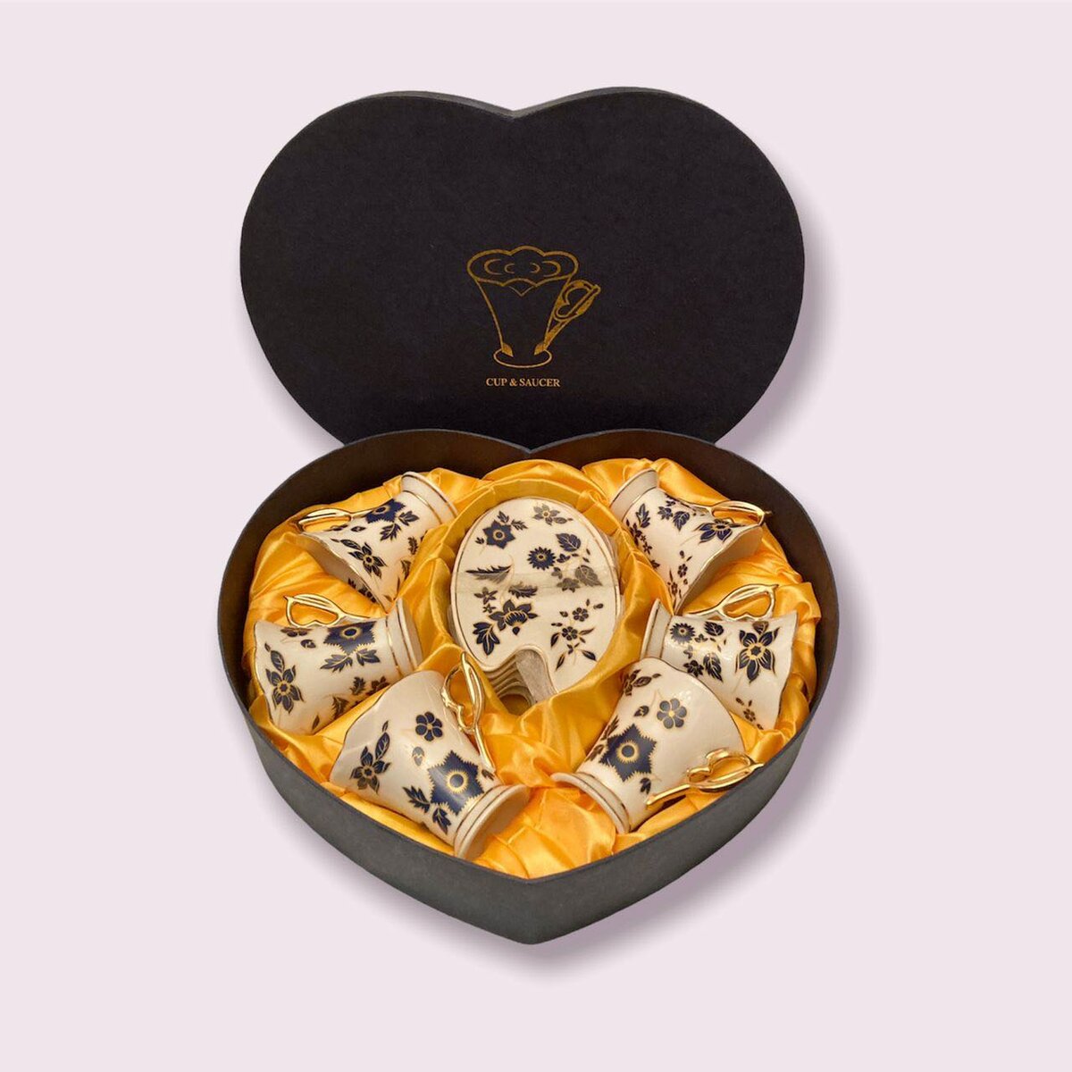Кофейная пара (чашка с блюдцем) на 6 персон необычной и красивой формы в подарочной коробке