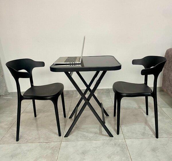 1 table vitrée et 2 chaise en mousse