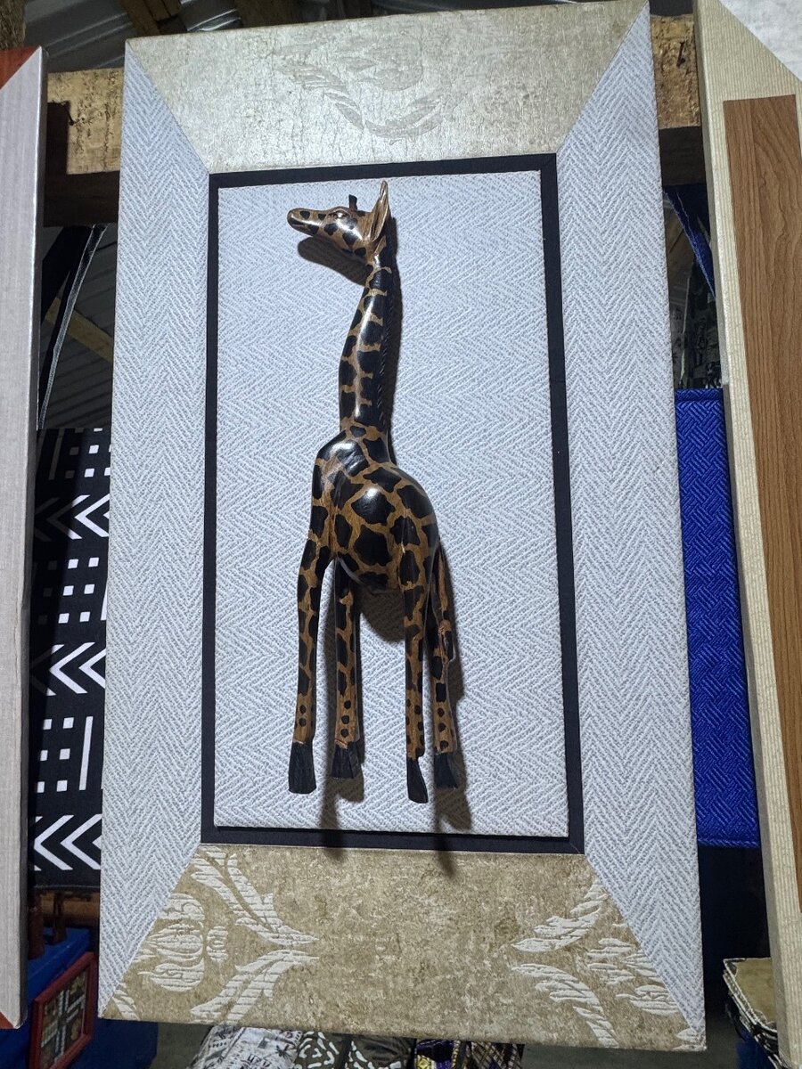 Ajoutez une touche d'élégance africaine à votre intérieur avec ce tableau mural featuring une girafe sculptée en bois. Parfait pour un salon ou une chambre, cet art mural est un véritable hommage à la nature et à l'artisanat.