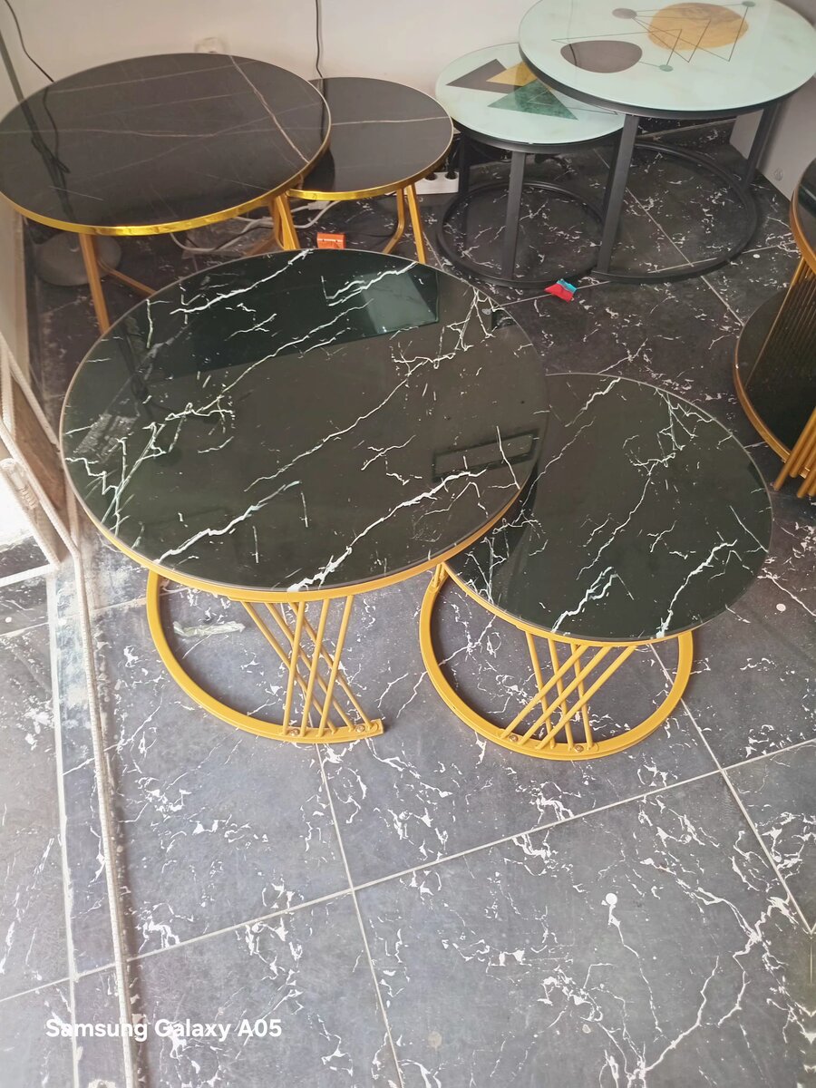 Ces élégantes tables basses en marbre avec des pieds dorés ajoutent une touche moderne à n'importe quel intérieur. Idéales pour le salon, elles offrent style et fonctionnalité. Parfaites pour accueillir des boissons ou des décorations, ces tables se démarqueront par leur design chic.