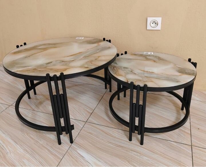Tables Gigognes Élégantes en Marbre et Métal Noir