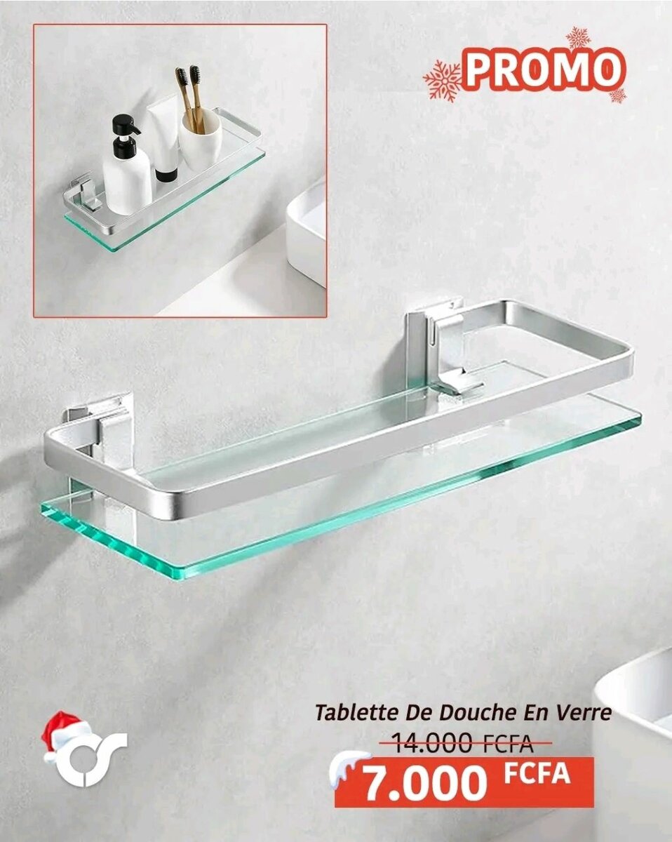 Étagère de salle de bain moderne en verre et métal, parfaite pour ranger vos produits de soins personnels.