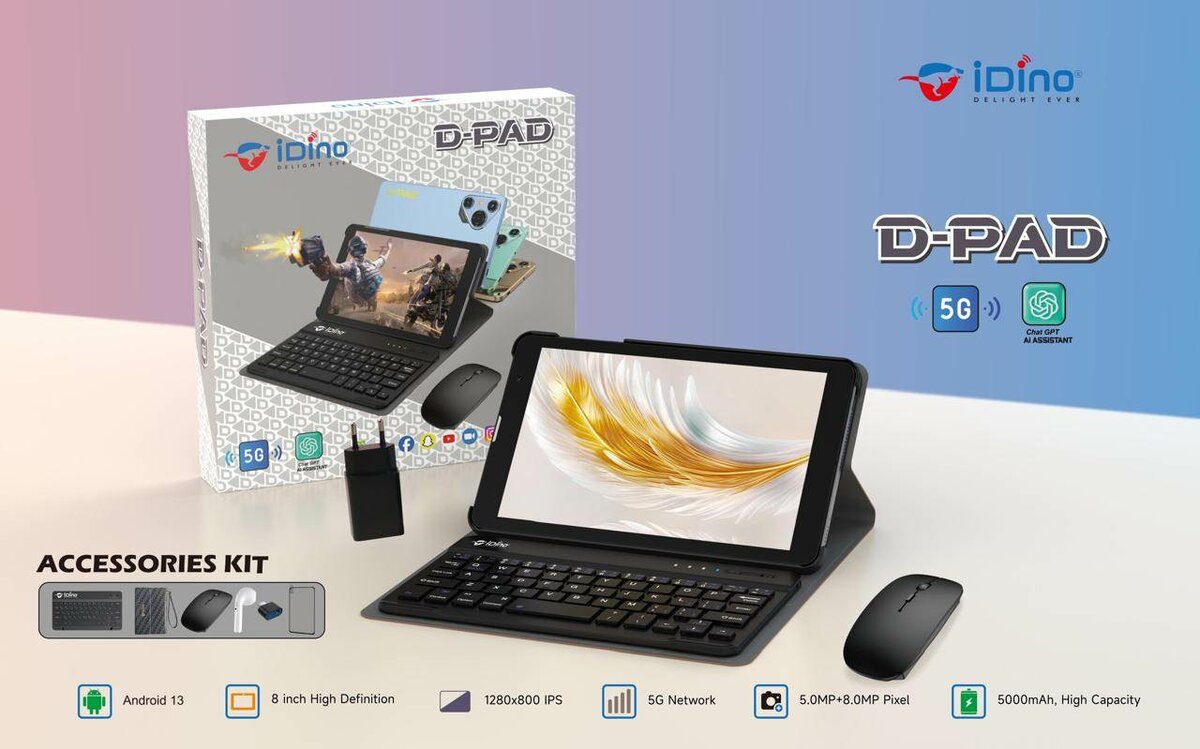 Découvrez la tablette D-PAD 8 pouces avec connectivité 5G, double SIM, et 256 Go de stockage. Idéale pour le voyage avec clavier sans fil et souris inclus. Profitez d'une expérience multimédia complète avec une caméra dynamique.