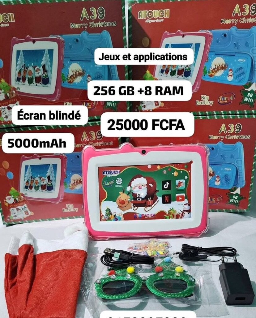 Tablette éducative A39 Écran blindé 15 jeux pré installés, Mémoire 256 giga , mémoire ram 08 giga Android Bluetooth camera sans puces Prix : 25000 francs