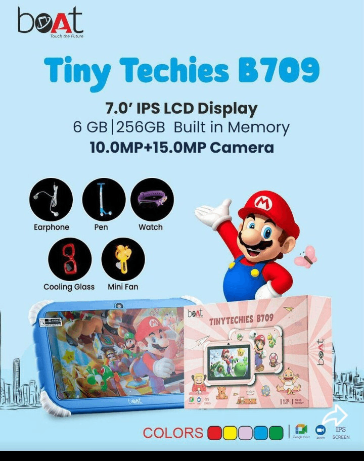 Offrez à votre enfant la tablette Tiny Techies B709 avec écran IPS de 7", 6 Go de RAM et 256 Go de stockage. Idéale pour apprendre et jouer, elle comprend une caméra 10MP+15MP. Parfaite pour stimuler l'imagination!