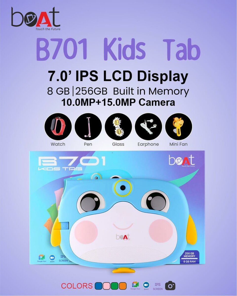Découvrez la tablette enfant B701 de 7 pouces, idéale pour apprendre et jouer. Avec 8 Go de RAM et 256 Go de stockage, cette tablette offre une caméra de 10.0MP+15.0MP. Robuste, elle inclut des accessoires comme montre, crayon, lunettes, écouteurs, et mini ventilateur.