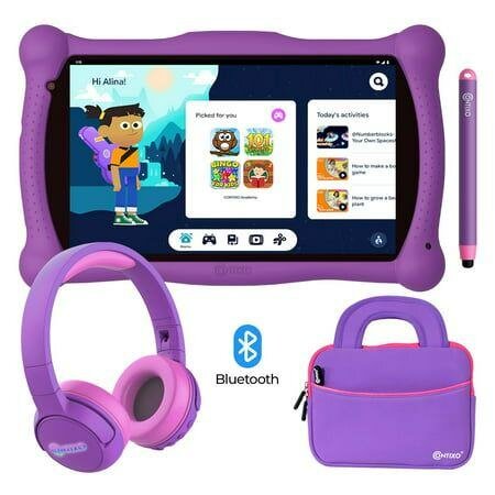Offrez à votre enfant une expérience numérique sécurisée avec cette tablette tactile violette, accompagnée de ses écouteurs Bluetooth et d'une housse de protection. Parfait pour les jeux éducatifs et la créativité.