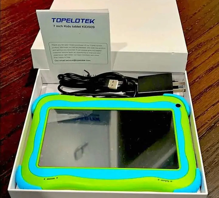 Découvrez la tablette tactile Topelotek 7 pouces pour enfants, un compagnon idéal pour apprendre et s'amuser. Équipée d'une coque de protection et livrée avec un chargeur.