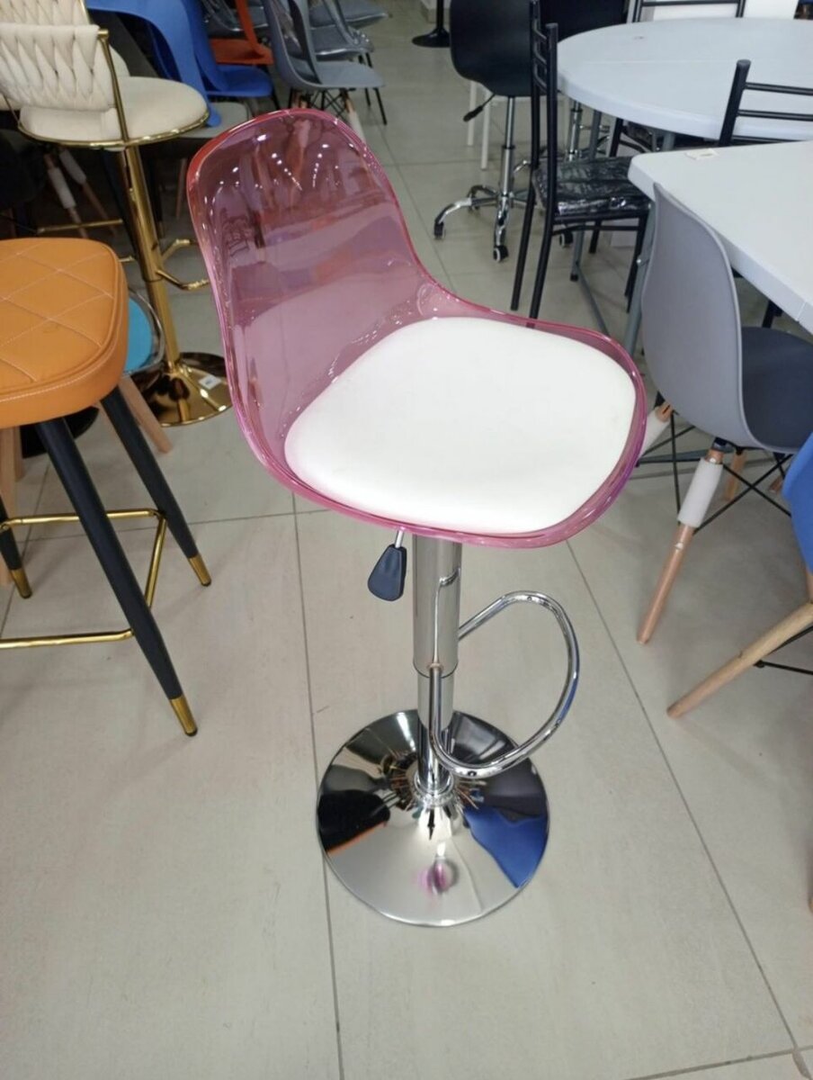 Découvrez ce tabouret de bar moderne au design transparent et rose. Réglable en hauteur, il est parfait pour les cuisines et les bars. Son assise confortable et son socle en métal chromé lui confèrent une élégance exceptionnelle. Idéal pour les intérieurs contemporains.