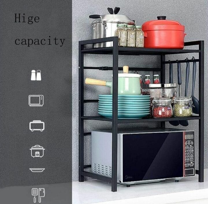 ÉTAGÈRE DE RANGEMENT TÉLESCOPIQUE À 2 NIVEAUX POUR MICRO-ONDE ET VAISSELLE. A UTILISER A LA CUISINE, AU SALON OU AU BUREAU. AJUSTABLE ENTRE 40 ET 60 CM SOLIDE, INOXYDABLE HAUTEUR 75CM LIVRAISON 1000 FRS