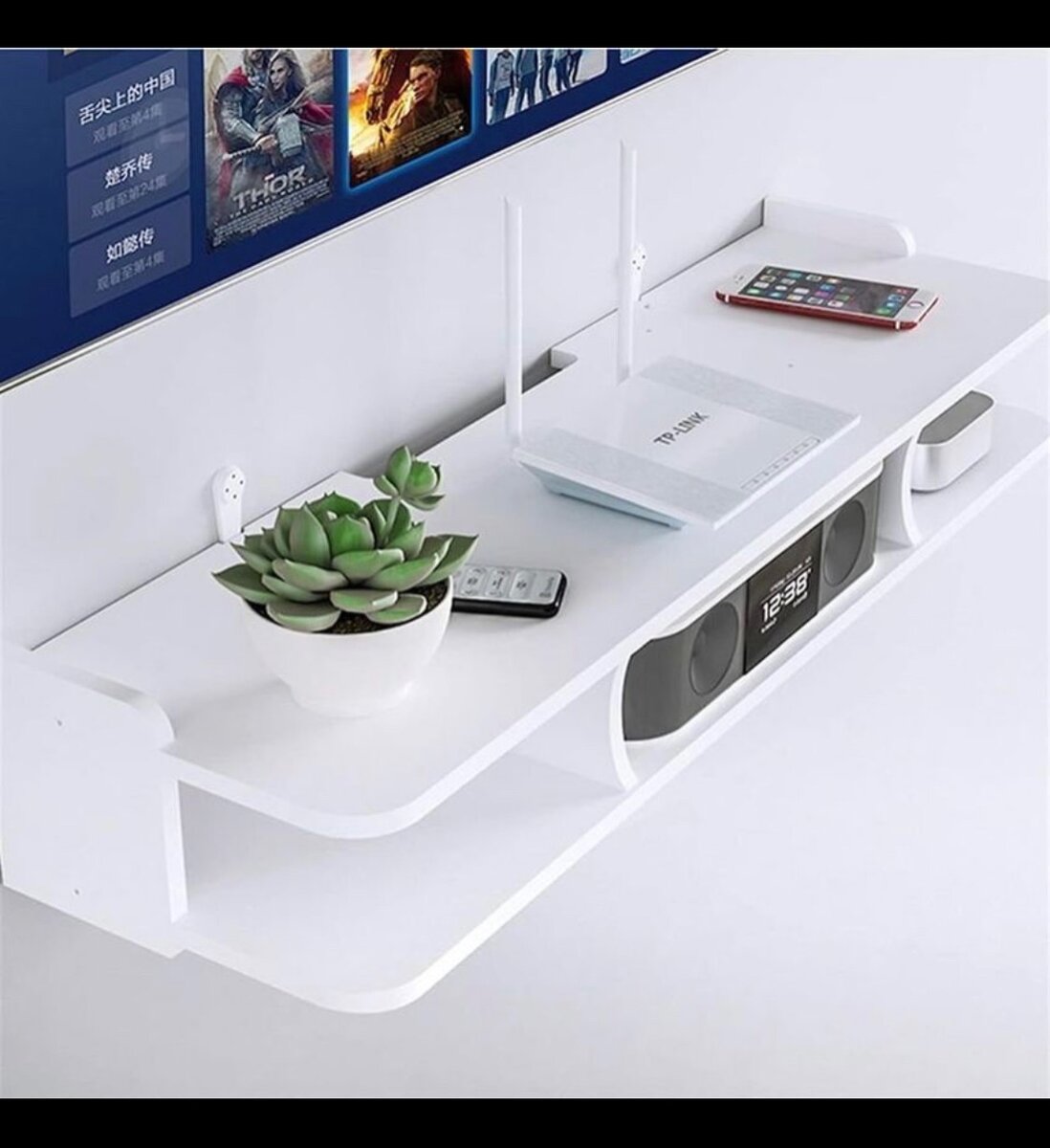 double usage: Il est non seulement parfait pour stocker vos routeurs, boîtiers décodeurs, téléphone fixe et ainsi de suite, mais aussi peut être utilisé comme une étagère de stockage pour afficher tels que les jouets, CD, il est idéal pour une grande décoration.
