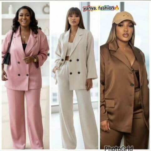 Tailleur satin femme (rose, beige, marron). Blazer croisé, pantalon coupe droite fluide. Style élégant pour toutes vos occasions. Confortable et tendance.