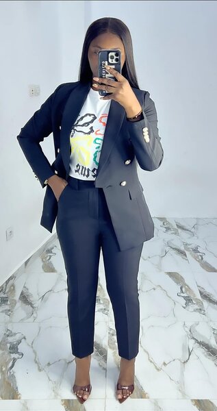 Ensemble 2 pièces pantalon + veste avec ceinture