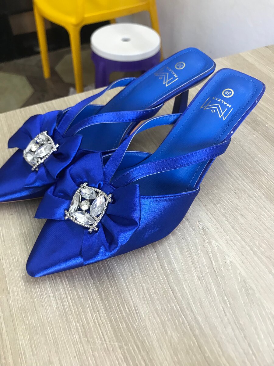 Découvrez ces magnifiques talons aiguilles en satin bleu, ornés d'une élégante broche scintillante. Parfaits pour vos soirées glamour et occasions spéciales, ils ajoutent une touche de sophistication à votre tenue. Leur conception soignée assure confort et style.