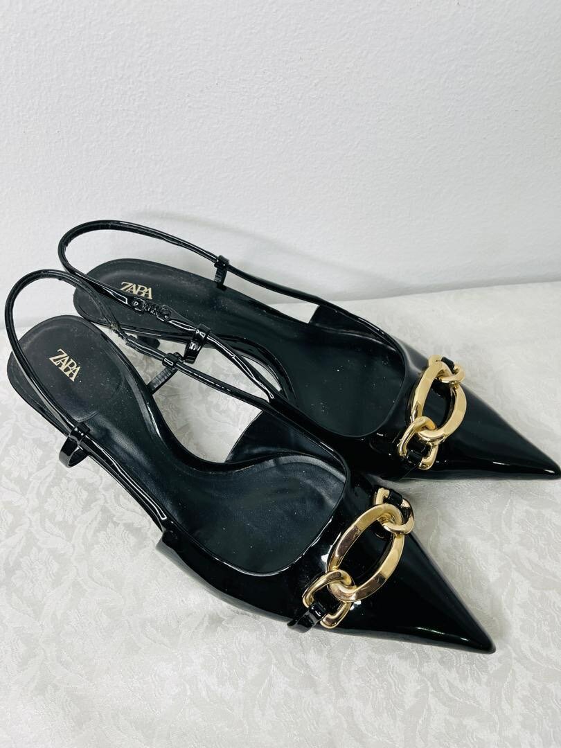 Découvrez ces élégants escarpins noir vernis avec des détails dorés qui captiveront tous les regards. Parfaits pour une soirée spéciale ou une tenue professionnelle chic, ils apportent une touche sophistiquée à votre garde-robe. Confortables et stylés, ils sont un choix incontournable pour celles qui désirent allier élégance et mode. Idéal pour soirées, événements ou même au bureau.