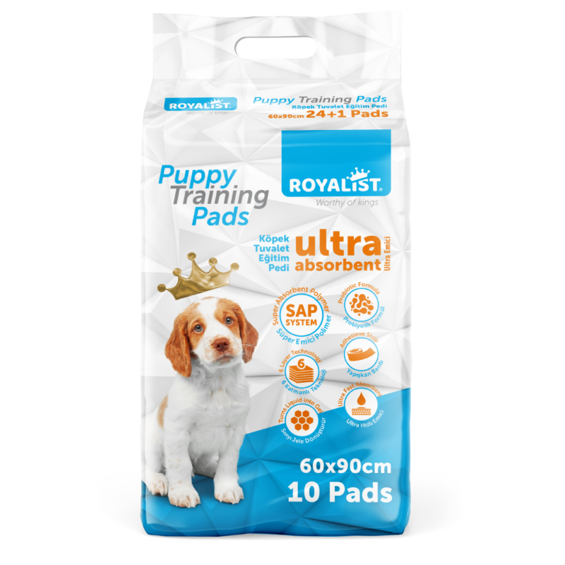 Les tapis d'entraînement Royalist pour chiots sont ultra absorbants avec un système SAP pour une protection maximale. Chaque pack contient 10 tapis de 60x90 cm, idéals pour l'apprentissage de la propreté de votre chiot. Simples à utiliser et offrant une fraîcheur continue, ils constituent la solution parfaite pour éviter les accidents à la maison.