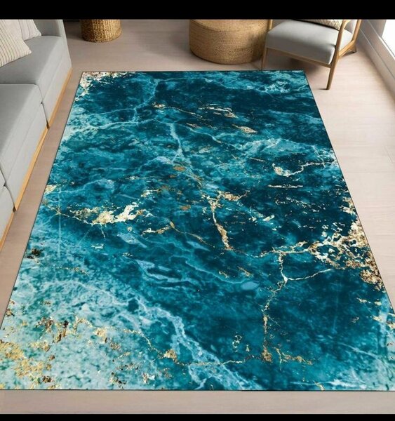 Tapis de salon imprimé 3d couleur de dore bleu et gris