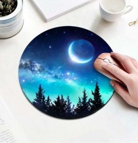 Ajoutez une touche magique à votre bureau avec ce tapis de souris illustré d'un paysage nocturne avec lune. Diamètre : 220mm. Son matériau antidérapant offre une surface lisse pour un contrôle précis de la souris. Idéal pour la maison ou le bureau.