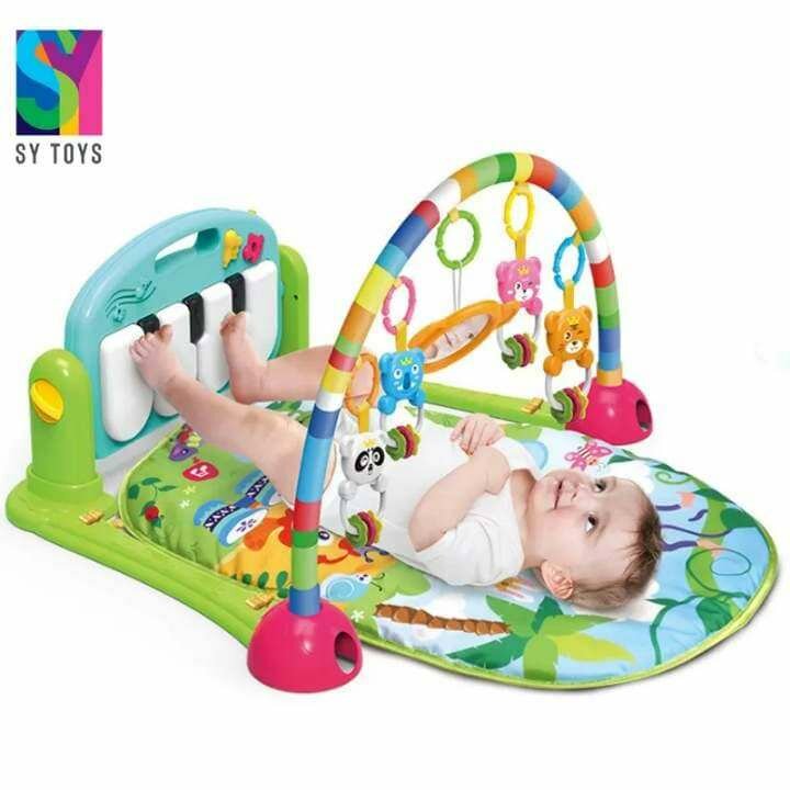 Stimulez l'éveil de votre bébé avec ce tapis interactif coloré. Doté de jouets suspendus et d'un piano musical, il favorise le développement sensoriel et moteur. Parfait pour les tout-petits!