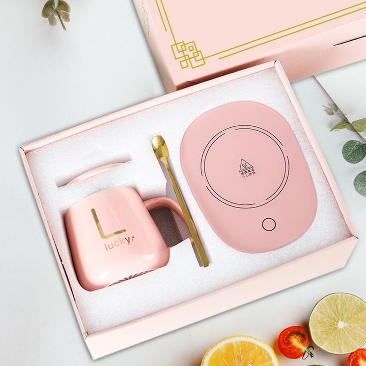 Profitez d'une boisson chaude à tout moment avec cette tasse chauffante élégante et colorée. Inclut une base chauffante pratique et un couvercle assorti. Idéale pour le bureau ou la maison.