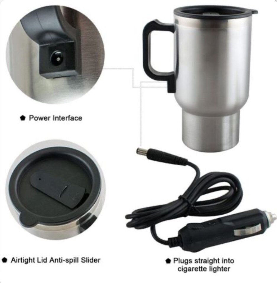 Gardez vos boissons chaudes en voyage avec cette tasse chauffante de 12V. Pratique avec son couvercle anti-débordement et branchement à l'allume-cigare, elle est idéale pour les longs trajets en voiture. Fabriquée en acier inoxydable pour une excellente durabilité.