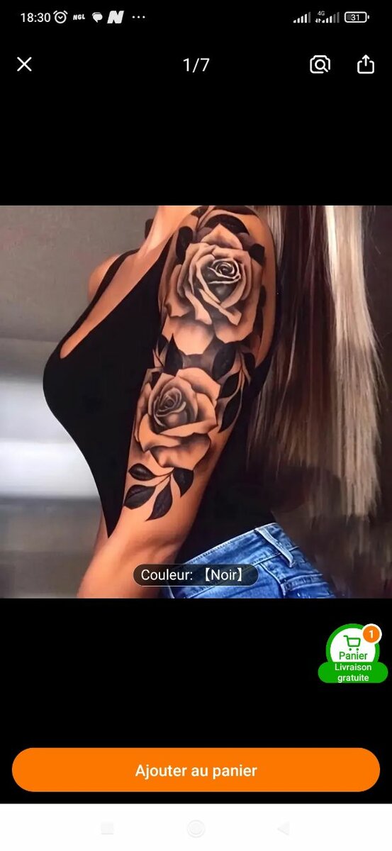 Explorez votre style avec ce tatouage éphémère fascinant de roses noires. Parfait pour une sortie spéciale ou un festival, il ajoute une touche d'audace et d'élégance à votre look. Facile à appliquer et à enlever, il est idéal pour expérimenter sans engagement permanent.