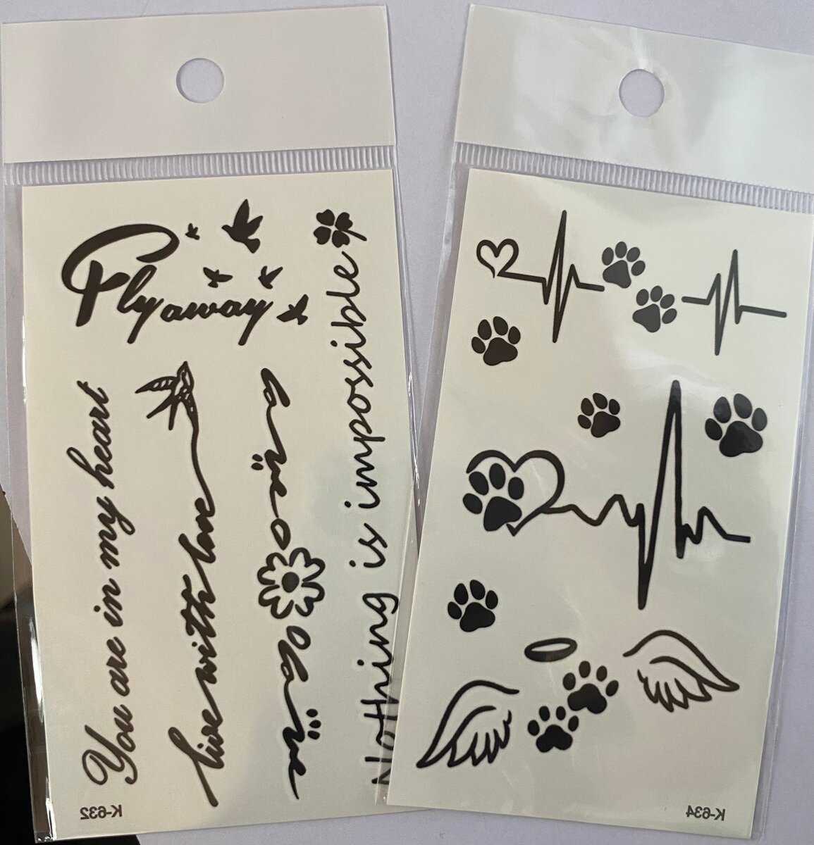 Explorez votre style avec ces tatouages éphémères variés. Parfaits pour exprimer votre créativité, ces designs incluent des motifs géométriques, des animaux et des citations inspirantes. Idéal pour toutes occasions et facilement applicables, ces tattoos temporaires sont un ajout idéal pour toute garde-robe moderne.