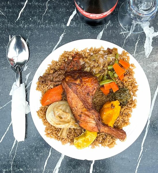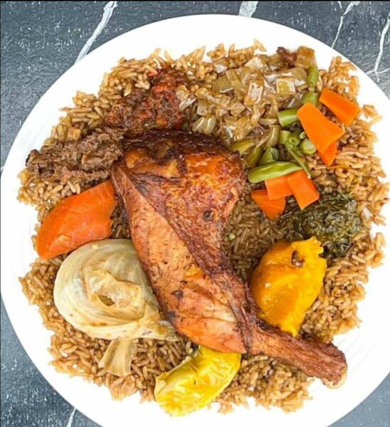 Du bon ragoût de riz au poulet et tout les ingrédients qu´il faut+ 1 jus+ thé