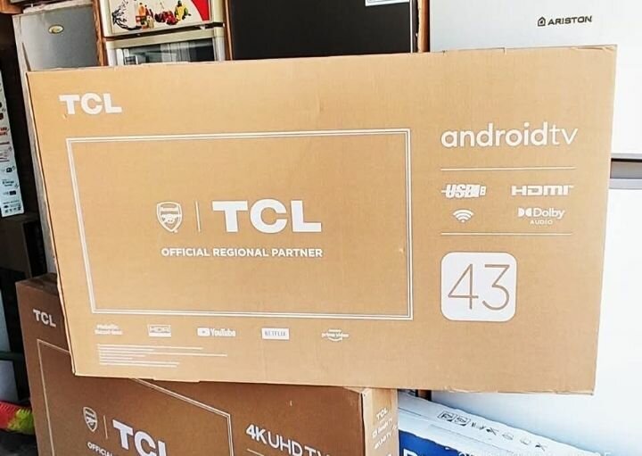 Téléviseur 43 pouces TCL Android TV. Profitez d'une image 4K UHD et de l'intégration d'Android TV pour un accès facile à vos applications favorites. Compatible avec HDR, Wi-Fi et HDMI. Idéal pour une expérience visuelle immersive.
