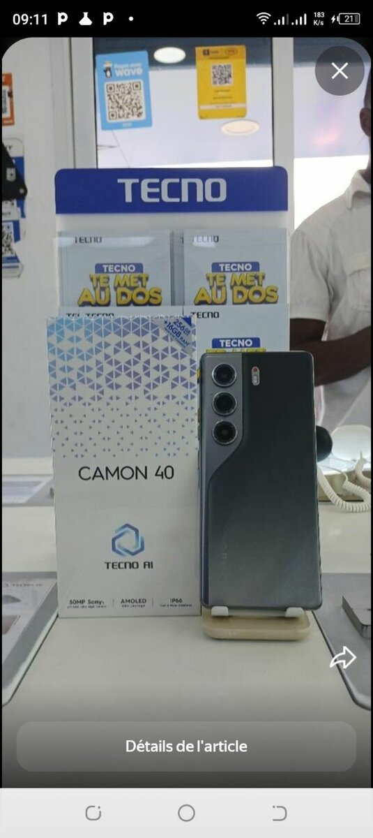 Découvrez le Tecno Camon 40, un smartphone élégant avec une conception moderne et des fonctionnalités avancées. Parfait pour les amateurs de technologie.
