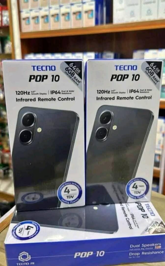 Découvrez le Tecno Pop 10, smartphone idéal pour les utilisateurs exigeants. Écran 120Hz, processeur performant, 4Go de RAM et stockage 128Go. Commandez via infrarouge.