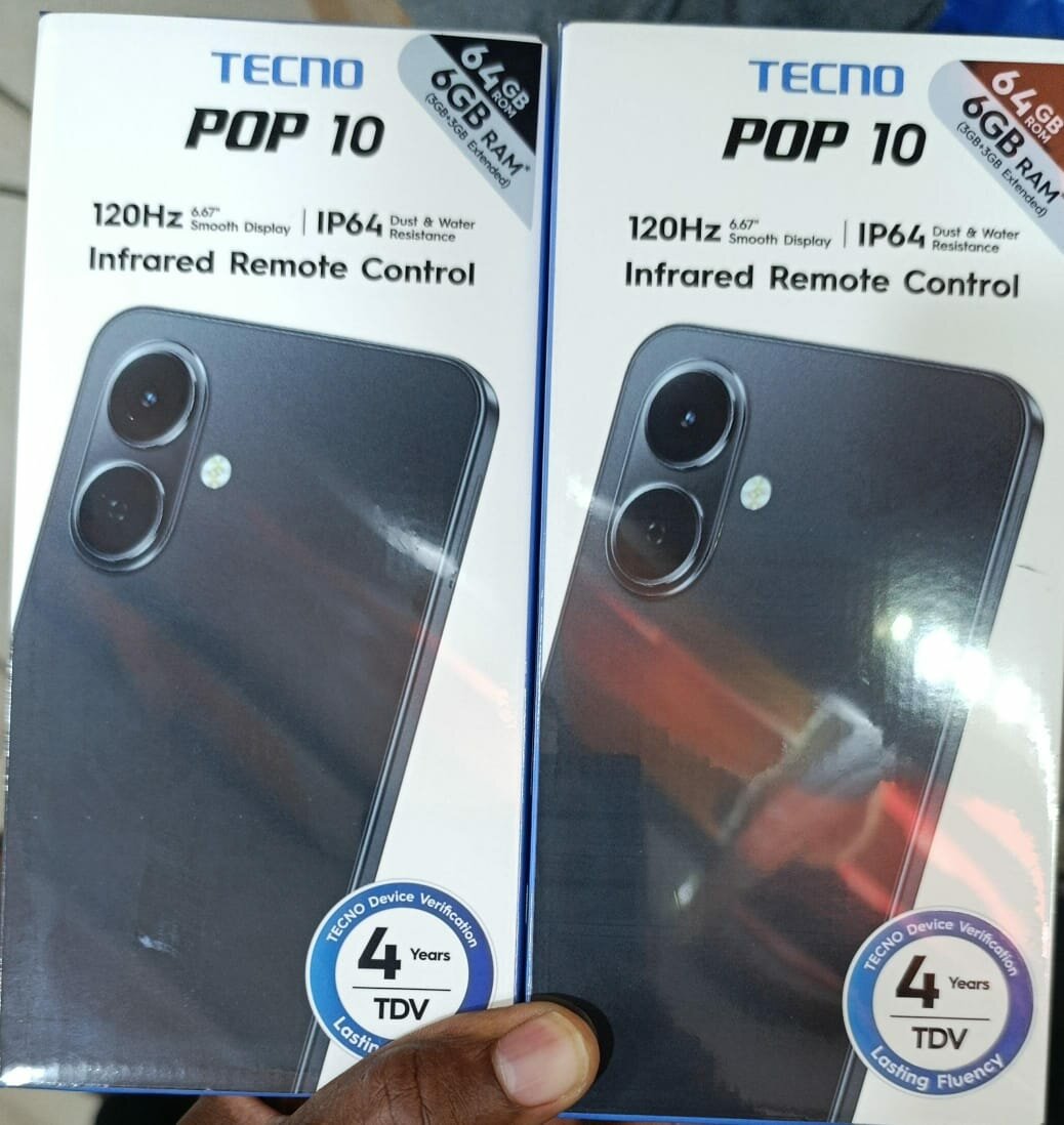 Découvrez le Tecno Pop 10 avec écran 120Hz, 64GB de stockage et 6GB RAM. Étanche IP64, il offre un contrôle infrarouge et 4 ans de garantie. Idéal pour un usage quotidien performant.