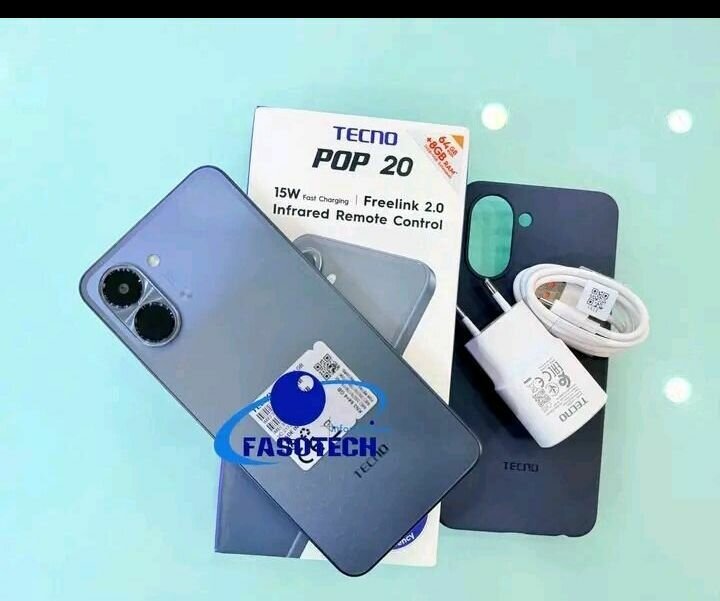 Découvrez le Tecno Pop 20, un smartphone élégant avec contrôle infrarouge, charge rapide 15W et technologie Freelink 2.0. Parfait pour les utilisateurs à la recherche d'un appareil fiable et performant.