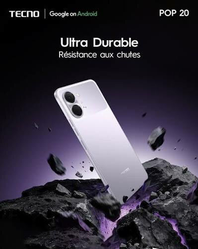 Découvrez le Tecno Pop 20, un smartphone ultra-résistant avec une charge rapide 15W, Freelink 2.0 et une télécommande infrarouge. Conçu pour durer, il est idéal pour une utilisation quotidienne intensive.